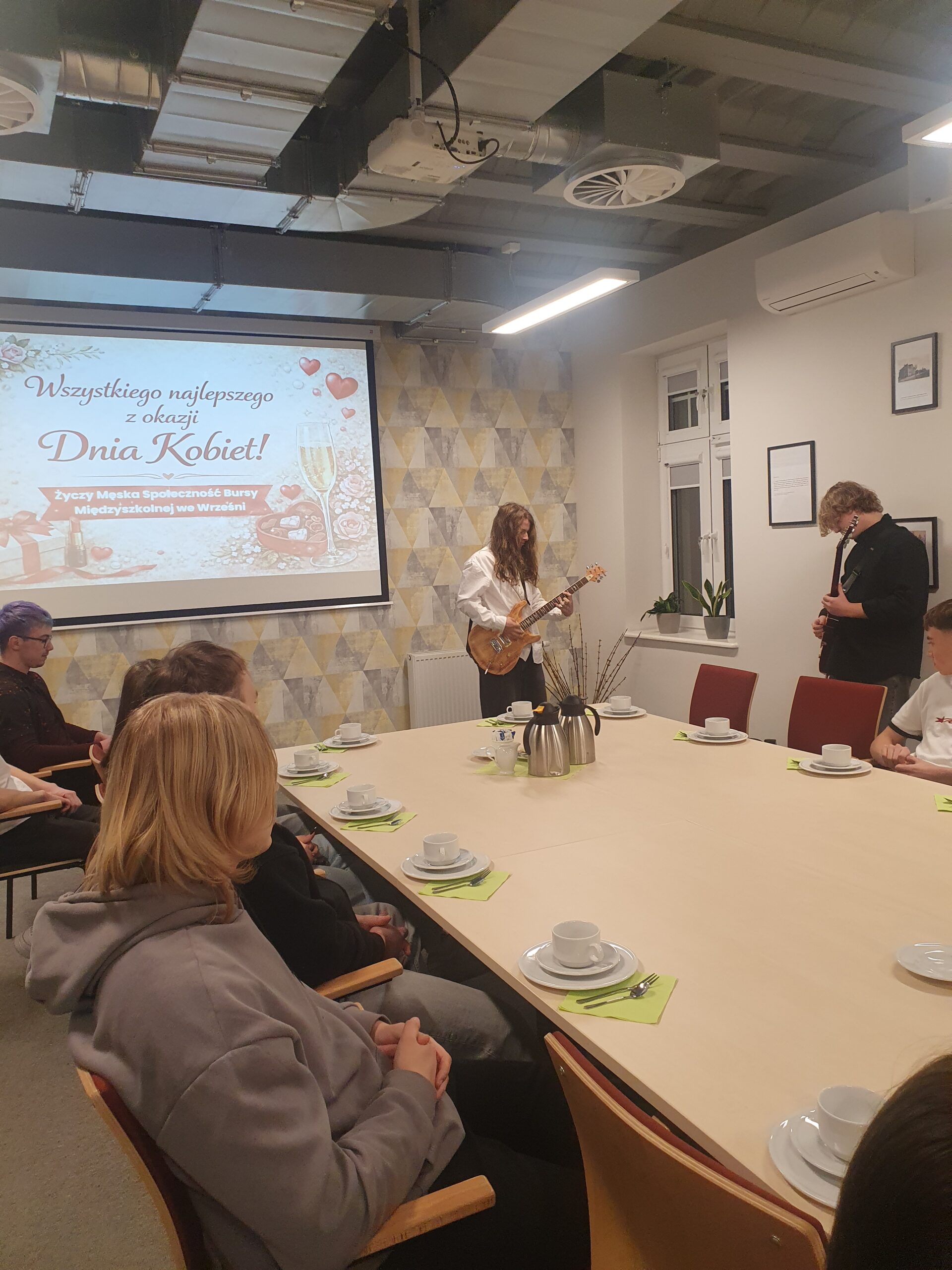 Męska społeczność bursy przygotowała program artystyczny: krotką historię święta, wyraziła uznanie dla wszystkich pań mieszkających i pracujących w bursie.